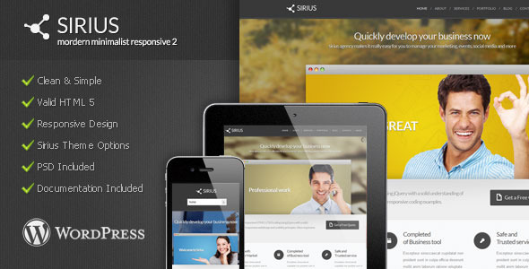 Sirius is Modern Minimalist Wordpress Theme 2. Built on a highly Modern and minimalist template. It’s the perfect template for everyone in need of a professional online presence. Whether your an HTML pro or just a beginner, you’ll have absolutely no problems at all working with this website template. With New Features of Wordpress 3.4.x, Sirius has been coded to improve capability of the Wordpresss 3.4.x features.